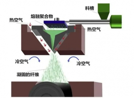 在熔噴無紡布生產中的主要參數指標是:熔噴設備牽伸通道中的空氣流量(風量)和系統被動壓力(風壓)。在實際操作中,應根據不同的需求來選用氣源設備的(空壓機、羅茨風機等)型號,比如pp料的熔融指數、噴絲板模量及組數、生產線運行速度、幅寬等參數要求計算出風量、風壓需求。一般氣源設備風量在4.0-60m3/min之間,功率需求在11kw-200kw之間,具體要看是多少產量的熔噴布生產線。